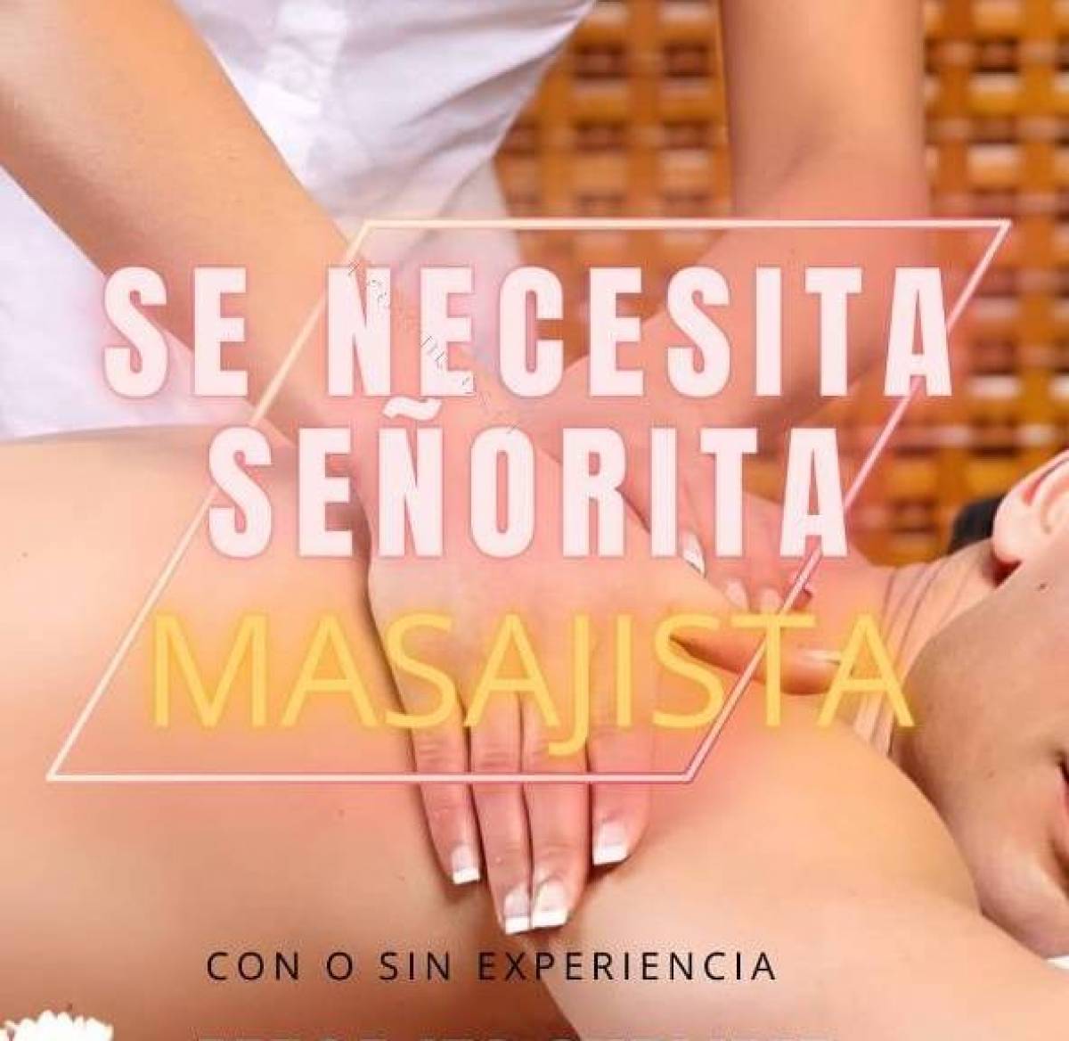 SE NECESITA SEÑORITAS CON BUENA PRESENCIA PARA TRABAJAR COMO MASAJISTAS TIEMPO COMPLETO ,EN UN BUEN AMBIENTE DE TRABAJO, SER COQUETA Y DISPUESTA A GANAR DINERO DIARIO .. ESCRÍBENOS PARA MAS INFORMACION